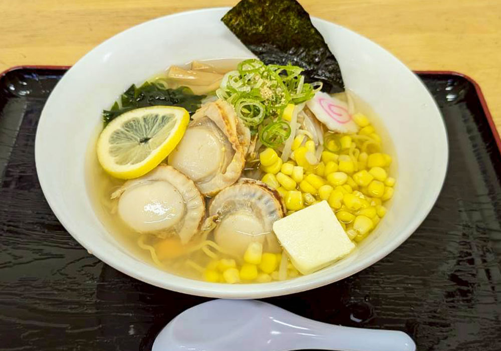 伯方の塩を使った塩ラーメンは、海鮮の旨味と調和し、ほたてとの相性も抜群。