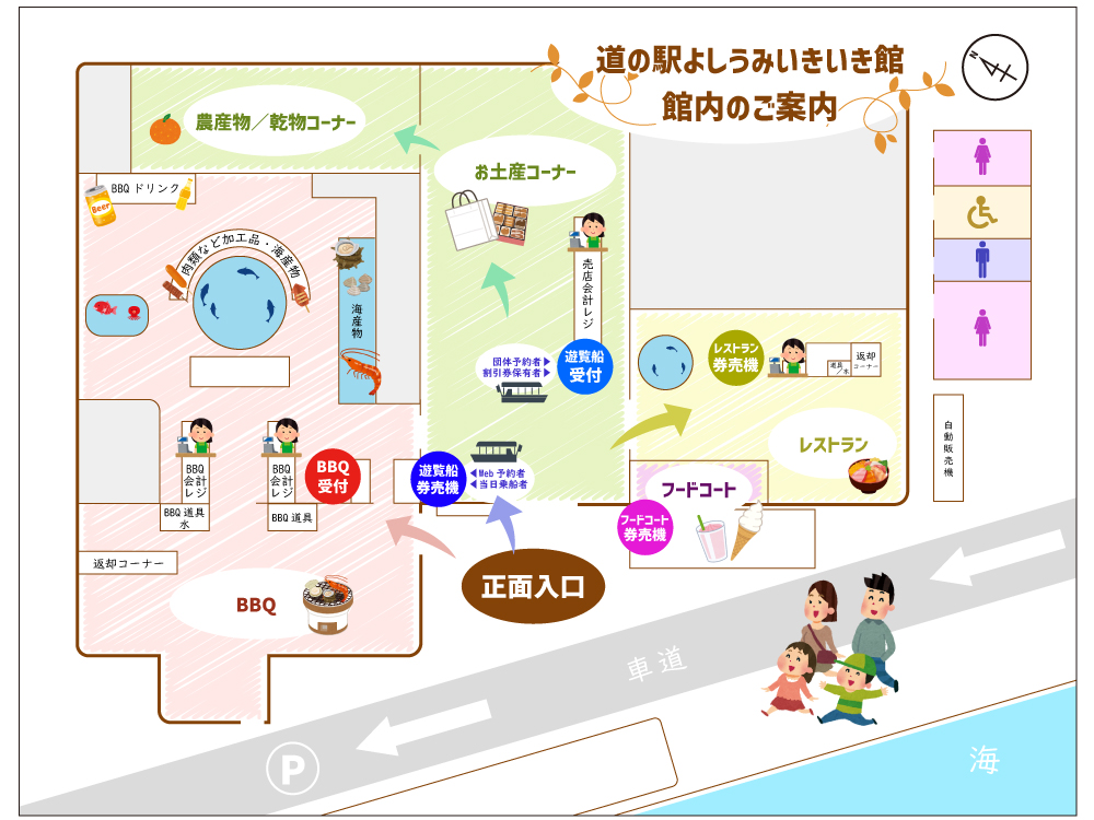 ※1)海産物をお土産等でお買い物される場合は10:00~16:00で対応しております。