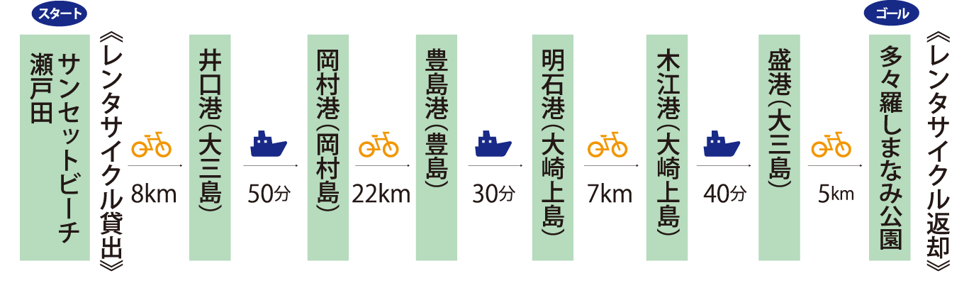 御手洗や木江の歴史ロマンあふれる町並みと、情緒ある7つの島をつなぐ橋。裏しまなみとも言われる「安芸灘とびしま海道」へ、王道「しまなみ海道」を経由して渡る。リピーターが願うルートを「サイクルシップしまなみ」が実現します。
