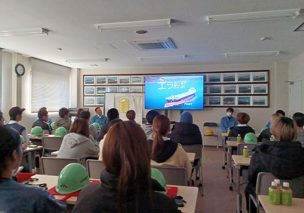 座学(ビデオ、会社説明、造船工程):15分/工場見学:約60分/質疑応答:約15分