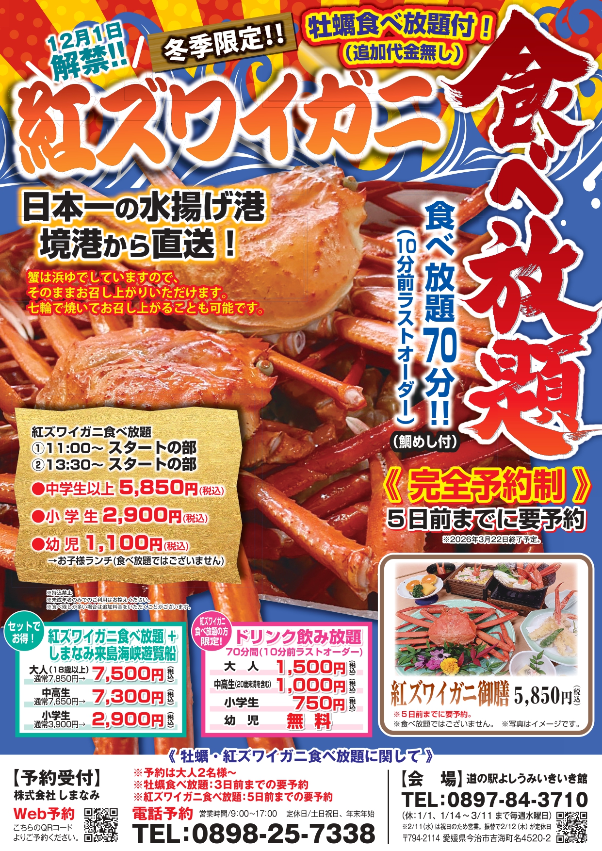 ※グループ内で紅ズワイガニ食べ放題と他のコースをお申込みいただくことは出来ません。
