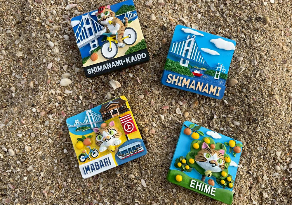 島なみのすけと、しまなみ海道の景色を切り取ったオリジナルマグネットです。